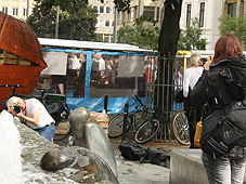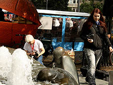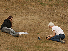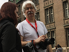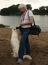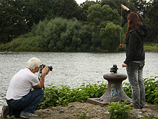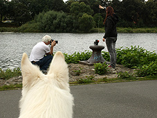 Nachdem wir im letzten Jahr zwar ohne Prämierung, aber zufrieden und glücklich-geschafft nach Hause gingen, gab es 2016 keine großen Diskussionen: die Teilnahme am Fotomarathon stand von vornherein fest, so dass Peter sich sogar ein "Early-Bird"-Ticket sichern konnte. Einen günstigen Startplatz unter den ersten 50 Meldern. Ich selber verzichtete auf die Meldung. Die Spuren des letzten Jahres waren gerade verheilt (entzündete Blasen, Fußnagelablösung an beiden Zehen mit entsprechend schmerzhaften Folgen). Außerdem waren wir im vergangenen Jahr mit der Zeitvorgabe nicht gut zurecht gekommen. In der vorgegebenen Zeit zwei unterschiedliche Fotos zu realisieren, ergab zusätzliche Fahrtwege. Man müsste sich trennen, was wiederum auf Kosten des gemeinschaftlichen verbringen des Tages ginge. Und ... nicht zuletzt: ein weiteres Familienmitglied, unser Weißer Schäferhund Indy, erforderte Rücksichtnahme. Bei Anmeldung wußten wir noch nicht, inwieweit er belastbar und den Anforderungen gewachsen sein würde. Also nur eine Meldung. Unsere Tochter, Indy und ich bildeten die Unterhalter, Assistenten und kreativen Mitdenker. Wir alle hatten einen oft unerwarteten, dennoch spannenden Tag. Auch ich nahm meine Kamera mit und entschied mich für ein "Making of" : Eine Darstellung von Brainstorming, Eindrücken und Entstehung einiger Szenen. Die Regeln waren einfach: 9 Stunden (von 11 bis 20 Uhr) war Zeit, um 9 Fotos zu machen. Die Themen wurden in 3er Gruppen an den Stationen mitgeteilt. Um 20 Uhr durften nur noch 9 Fotos in der Reihenfolge der Themen auf der Speicherkarte sein. Klingt einfach, ist es aber nicht. Der erste Eindruck des Tages: Regen! Beim Treffpunkt "Kulturzentrum Schlachthof", regnete es. Mal mehr, mal weniger. Der erste flüchtige Gedanke "warum tue ich mir das eigentlich an?" wird ersetzt durch die Antwort: "Weil es riesigen Spaß macht!". Am Treffpunkt war es reichlich eng, da sich alles unter die großen Schirme und in den Eingangsbereich drängte. Die unteren, linken Fotos zeigen die eingereichten Umsetzungen der Themen und sind von Peter. Die Fotos der rechten Leiste zeigen die Eindrücke am Rande des Marathons. Pünktlich um 11 Uhr riefen die Veranstalter zum Gruppenfoto, kurz darauf kam Peter mit der ersten Karte und den ersten drei Themen zurück. Das Oberthema für den gesamten Wettbewerb lautete: "Läuft", die ersten drei Aufgaben: 1. "Fliegender Start", "In die Hufe kommen" und "Boxenstopp" waren im Bild zu interpretieren. Nächster Treffpunkt: Universum. Thema 1: Fliegender Start (Foto: Peter von Döllen)Ab ins Trockene, ins Auto. Brainstorming. Flughafen. Schnell wurden über das Internet die Abflüge gecheckt. Der nächste Abflug in die Türkei war nicht mehr erreichbar. Danach gab es eine Pause von fast 2 Stunden. Den Weg konnten wir uns sparen, wollten wir uns nicht gleich einen Zeitverzug einhandeln. Möwen, Enten, Schwäne starten fliegend. Zu banal, darauf kommt jeder. Kurzer Blick auf die beiden anderen Themen. Tankstelle für Boxenstopp, irgend etwas, das anhält, Pause ... viele Ideen kamen, damit wurde das Thema zurück gestellt. Erstmal losfahren, um in Bewegung zu kommen. Erstes Ziel: Parkhaus in der Innenstadt, auf dem Weg dorthin die Augen offen halten. Wenn alle Stricke reißen, gibt es in der Innenstadt genügend startende Tauben. Auf der Fahrt fiel uns ein Laden mit Luftballons in die Augen. Geschlossen. Schade. Dann entdeckten wir davor bereits die ersten Teilnehmer ... mit enttäuschtem Blick. Dann war diese Idee wohl doch nichts Besonderes. Am Ende wurde der "fliegende Start" ein Papierflieger mit Startnummer. Für den roten Faden, der sich durch die Bilderreihe ziehen sollte, gab es zwei Ideen. Unser Hund Indy, der mit jedem Foto weiter in die Ferne rücken sollte und eine alte Kamera, die irgendwo im Bild auftaucht. Beides wurde realisiert, doch bereits jetzt offenbarten sich erste Probleme mit der Hundevariante. Zu unsicher, nicht genau zu platzieren und zu schnell abgelenkt. Indy ist halt kein Karhu, den man millimetergenau platzieren konnte. Aber was nicht ist ... Indy ... unser Indy überraschte uns. Bereits am Startpunkt begrüsste er gelassen die fremden Hunde. Das Training schien Früchte zu tragen. Auch der Trubel von 300 Menschen machte ihm nichts aus. Er liess sich sogar anfassen und reagierte auf Ansprache freundlich und nicht mehr mit Gebell. Die Fotosession mit dem Papierflieger kam ihm offenbar reichlich merkwürdig vor ... die Tauben, die umhereilenden Menschen: alles war interessanter als die Kamera. Einen Moment unserer Unachtsamkeit (da wir alle auf die zweite Fotoserie konzentriert waren), nutzte er, um eine Spaziergängerin mit wütendem Gebell zu verscheuchen. Indy schweigend einfach knuddeln zu wollen, scheint noch keine gute Idee zu sein. Ich ärgerte mich. Durch derartige Unachtsamkeit meinerseits kann viel zunichte gemacht werden. Zukünftig blieb meine Aufmerksamkeit bei Indy. Thema 2: In die Hufe kommenHuftiere ... Pferde, Kühe, Schafe. Bürgerpark? Kurze Abwägung und ein Nein. Zu viele dürften auf diese Idee kommen. Also den übertragenen Sinn? Der erste Weg führte ins Sportschuhgeschäft. Hintergedanke: Laufband, Schuhe anziehen, irgendwas in der Richtung. Unser Wunsch, im Geschäft fotografieren zu dürfen, wurde sofort abgelehnt. Ein höflicher Rauswurf. Halbherzig brainstormten wir weiter ... Auf dem Marcusbrunnen ist doch ein Pferd .... dort angekommen stellten wir fest: Pferd: ja, doch nur der Kopf. Keine Hufe. Wenigstens gab es hier Wasser satt für den Hund. Der sich wegen der spritzenden Fontänen nicht herantraute. Also fand ich mich sitzend am Marcusbrunnen wieder, schöpfte Wasser für Indy, das der dann aus sicherem Abstand trank. Während Peter und Malin ihr zweites Foto realisierten, bemühte ich mich, das "Monster Brunnen" für Indy sympathischer zu machen. Am Ende wurde "In die Hufe kommen" ein Fuß, der sich gerade die Schuhe anzieht. Thema 3: BoxenstoppDafür fiel uns der Boxenstopp förmlic