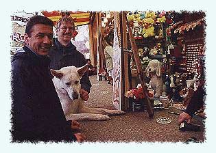 Das nächste war die Osterwiese im Jahr 2001, auch wieder in Begleitung von Greif und Queenie und später auch mit unserer Verwandtschaft allein. Lumi hatte die Nase fast nur auf dem Boden, damit ihm bloß keine Leckerei entging. Bei diesem Besuch entdeckte er seine Vorliebe für das Schießen. Er sprang am Schießstand hoch und verfolgte ganz genau, was Herrchen dort machte. Bei den Karussells mussten wir ihn grundsätzlich zurück halten, er wäre liebend gerne eingestiegen. Lumi war der perfekte Kirmeshund und er wird mir bei der nächsten Osterwiese sehr fehlen.