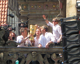 Viel zu sagen oder zu schreiben gibt es da nicht ... es war einfach phänomenal. Das Wetter spielte mit, es war aber nicht zu warm. Natürlich hatte man ewig eine Fahne oder etwas vor der Nase, aber wen stört das schon. Immerhin gab's einen Blick auf die Spieler und den Pokal und die Atmosphäre ... die kann man sowieso nicht beschreiben.