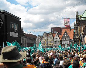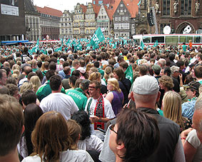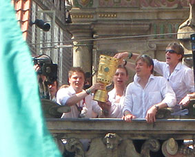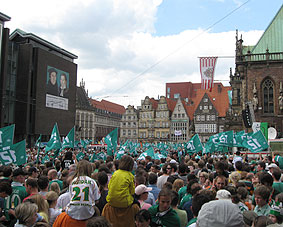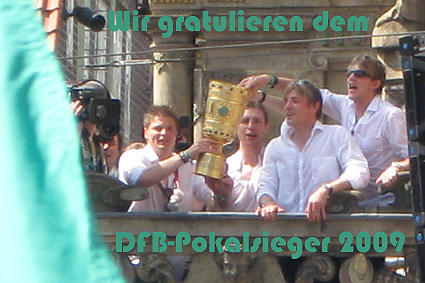 Es hat ja ein wenig gedauert, seit der Meisterfeier 2004 sind fünf Jahre vergangen. Aber solche Ereignisse sind eben nicht alltäglich. Am 30. Mai 2009 gewann Werder Bremen den DFB-Pokal und am 31. Mai (Pfingstsonntag) machten Malin, Karhu und ich uns auf zur Feier auf dem Marktplatz