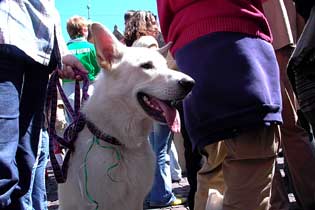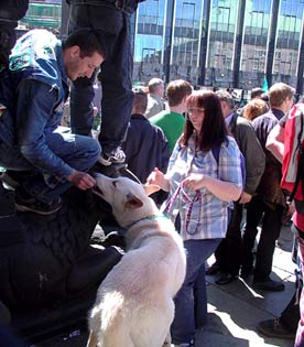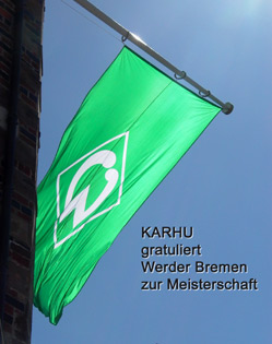 Meisterfeier am 16.05.2004 auf dem Bremer Marktplatz und Domshof. Zirka 25000 Fans waren dort. Und ein Weißer Werderhund!