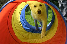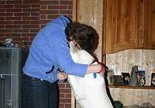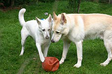 Natürlich - wie sollte es anders sein - klappte "es" fast auf Anhieb. Evchen reiste kurz nach Mittag an und am Nachmittag war die Pflicht bereits erledigt. Und wir hatten keineswegs den Eindruck, dass es eine lästige Pflicht war ... Evchen und Karhu verstanden sich prächtig und wir entdeckten an Karhu Gentleman-Eigenschaften. Der sonst eifersüchtig gehütete Basketball (oder das, was davon übrig ist) wurde Evchen überlassen.