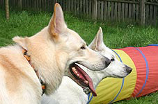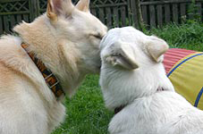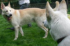 Es bleibt dabei: Keine Welpen von "Karhu"2011 war ein Jahr, in dem wir in Bezug auf die Weißen Schäferhunde einige Entscheidungen treffen mussten. Im März 2011 stellten wir uns bei den Vorstandsneuwahlen des BVWS e.V. nicht mehr zur Wahl. Mit dem 31. Dezember 2011 sind wir nach 16jähriger Mitgliedschaft aus dem BVWS ausgeschieden. Für Karhu bedeutet dies gleichzeitig das wohlverdiente "Rentenalter". Natürlich bedauern wir, dass in den fast acht Jahren seiner Zuchtzulassung in VDH/FCI hauptsächlich wegen seiner Wildfärbung kaum Interesse an ihm bestand und der einzige Decksprung 2008 ohne Welpen blieb. Wir kennen diesen verrückten Kerl besser als andere und schätzen seinen freundlichen, unerschrockenen und geduldigen Charakter. Irgendwann sollte aber auch ein Rüde unserer Meinung nach aus der Zucht genommen werden. Wir identifizieren uns weiterhin mit den Richtlinien, die die Mitglieder und Züchter des BVWS in den 30 Jahren der Vereinsgeschichte erstellt haben. Dort ist das Zuchtendalter der Rüden mit dem 10. Lebensjahr angegeben, ein Alter, das Karhu im Mai erreichen wird. Zu gern hätten wir einem Nachkommen ein Zuhause gegeben, aber manche Wünsche gehen eben nicht in Erfüllung. |