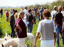 Im Gegensatz zum Vorjahr hatten sich inzwischen alle Teilnehmer und Hunde in der "Scheune" eingefunden, herrschte dort doch noch eine angenehme Kühle. Bei kalten Getränken ließen sich erste Kontakte knüpfen - die Hunde liefen wie im letzten Jahr auch fast alle ohne Leine herum, was am gesamten Tag zu keinerlei Problemen führte. Niemand hatte wohl etwas anderes erwartet. Auch die Betreiber der Gastwirtschaft, die im letzten Jahr noch skeptisch waren, gingen inzwischen weitaus lockerer mit den Hunden um.