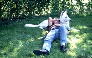 Wir konnten bei dieser Gelegenheit unsere Kalender für 2001 vorstellen, die am letzten Donnerstag gerade noch rechtzeitig fertig geworden waren. Ebenso lag ein "Prototyp" unseres neuen Buches "Weiße Schäferhunde KOMPAKT" aus, das ab September erhältlich sein wird. Für die White Shepherd Helpline war eine Liste der zu vermittelnden Tierheimhunde ausgelegt, die auf sehr großes Interesse stieß.