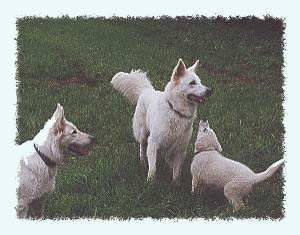 Auch unter den Weißen Schäferhunden hatte er Freunde. Durch die weiten Anfahrten waren die Treffen aber begrenzt. Nur Greif und Queenie sowie die Samojedendame Yeti waren einige Male bei uns zu Besuch und lernten den Lumi bereits als schlapp- und schlitzohrigen Welpen kennen. Über diese Erlebnisse werde ich im Folgenden noch berichten.